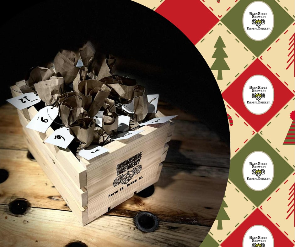 Beers are lied in a limited collectable solid wood crate, vintage-inspired design, hand-built right here at BarnRidge Brewery.